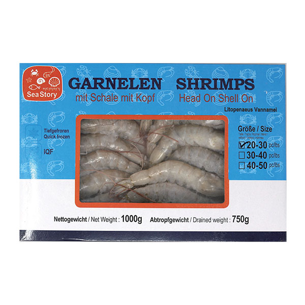 Garnelen(G) m.S.m.K – 20/30 / Shrimps(G) HOSO – 20/30 / 对虾 有头有壳 20/30